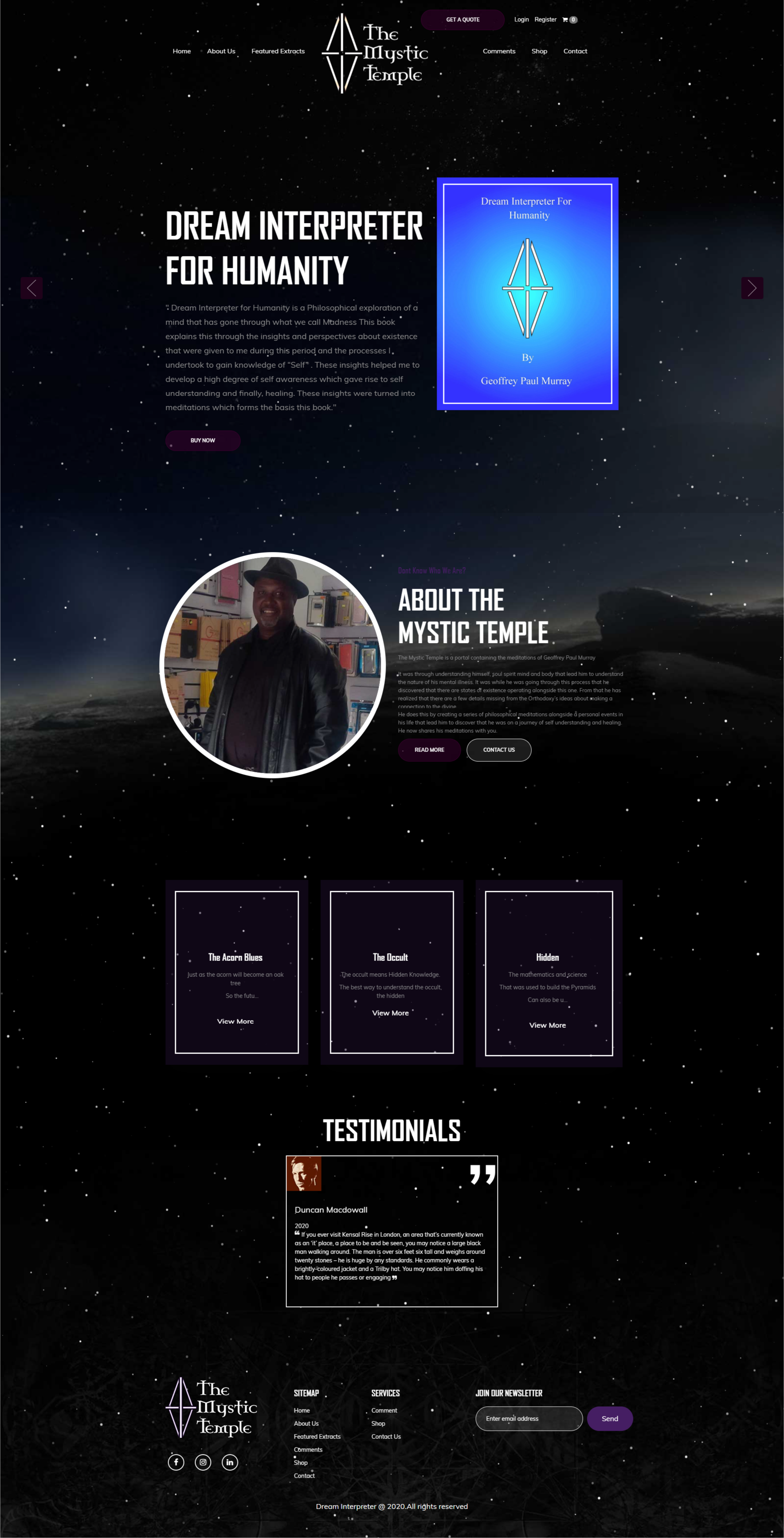 The project asked for a website that could act as a store where people could purchase the compilations by Geoffrey Paul Murray. While at the same time, the website had to be able to show abstracts of the teachings.